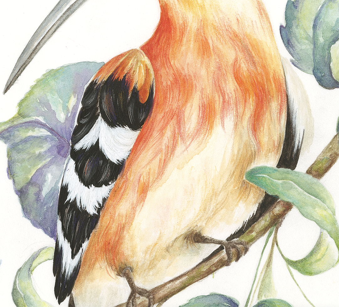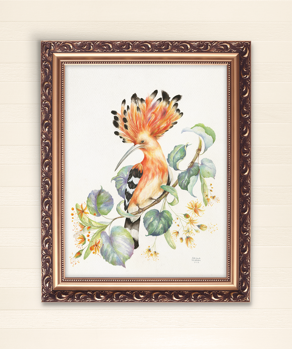 O lucrare unicat, realizată cu migală și rafinament, ce aduce în prim-plan eleganța și farmecul unei păsări iconice din folclorul românesc: pupăza.